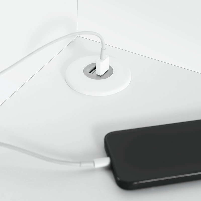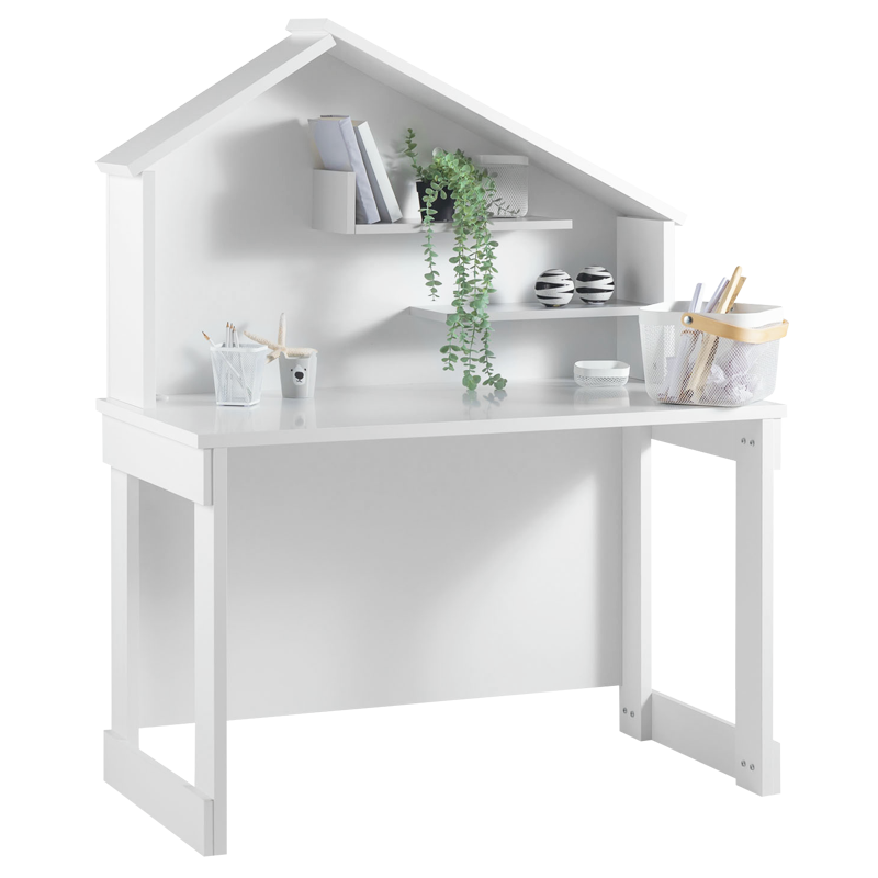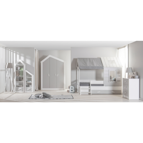 За удобство и организация, бюрото разполага с два рафта, които осигуряват място за подреждане на книги, учебни материали или декорации. Просторният работен плот с размери 120 х 59 см предлага достатъчно място за учене, рисуване или игри.MY HOUSE разполага с вградени USB и Type-C портове, които правят зареждането на устройства като телефони и таблети бързо и лесно. Тази практична екстра добавя удобство към ежедневието на вашето дете и го превръща в модерно решение за учене и забавление.Мебелите от серия WHITE HOUSE предлагат гъвкави възможности за обзавеждане на детската стая. Можете да създадете цялостен хармоничен интериор, комбинирайки всички елементи от серията – легло, гардероб, бюро, скрин и етажерка. Мебелите могат да се използват и самостоятелно или в частични комбинации, за да предложат идеалната персонализация спрямо вашите нужди и предпочитания.