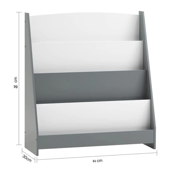 - Детската етажерка е изработена от висококачествен MDF в бяло и сиво и лесно се поддържа чиста. Подходяща както за момичета, така и за момчета.