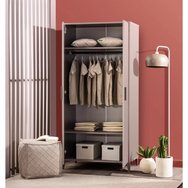 Серията RIGA предлага многофункционални и гъвкави решения за обзавеждане на младежката стая. Детският гардероб RIGA може да се използва самостоятелно или да се комбинира с останалите мебели от колекцията, като легло, гардероб, бюро и скрин, за да се създаде хармоничен и стилен интериор, който да се адаптира към индивидуалните нужди и предпочитания на вашия тийнейджър.