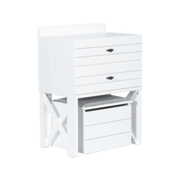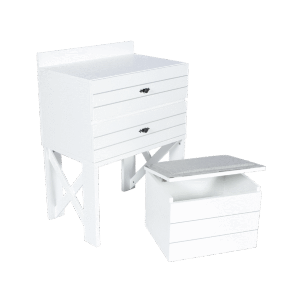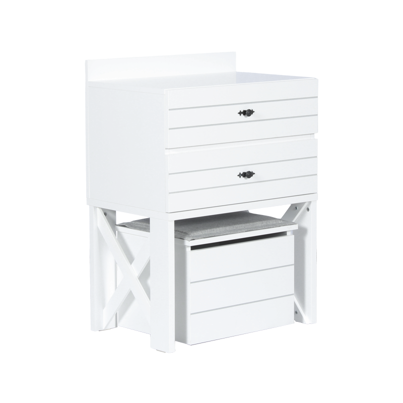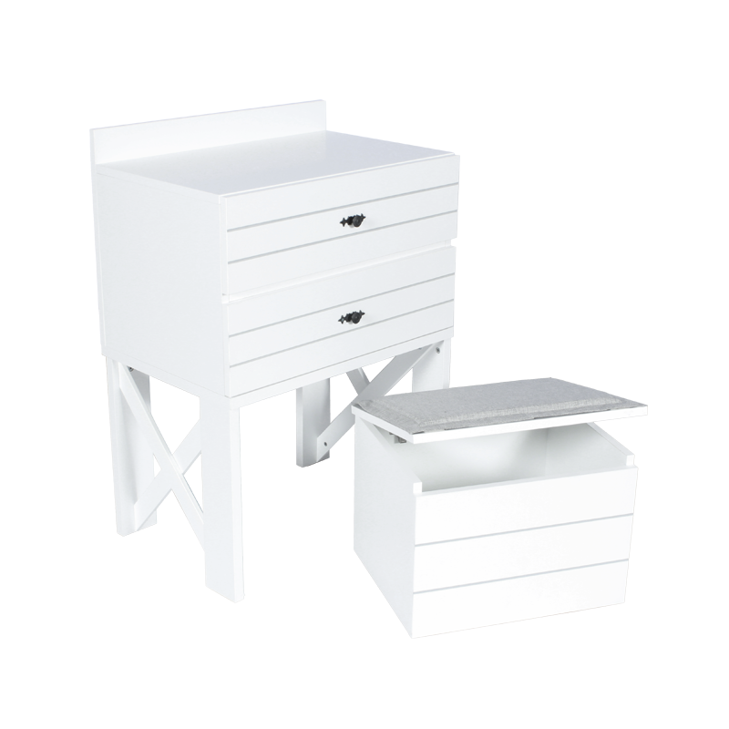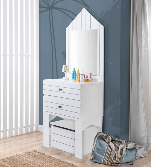 Двете просторни чекмеджета с механизъм за плавно затваряне осигуряват тих и сигурен достъп до дрешките. Скринът е изключително универсален: превърнете го в тоалетка заедно с огледалото от серията или добавете под него шкаф за играчки MIAMI за още повече ред и организация в детската стая.