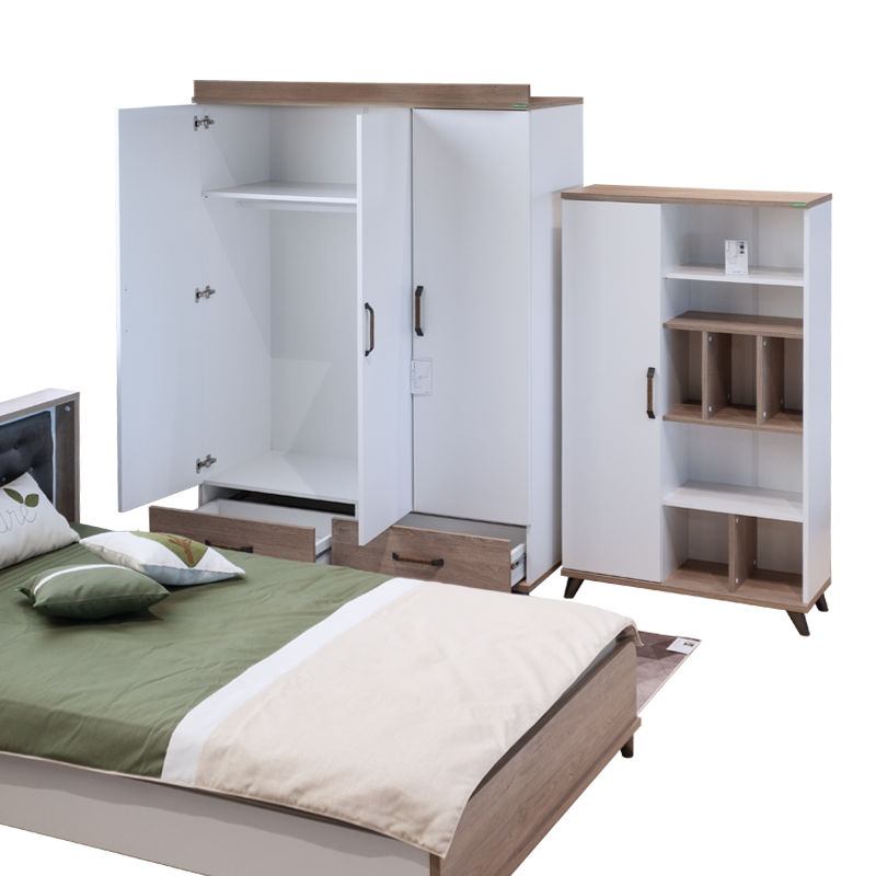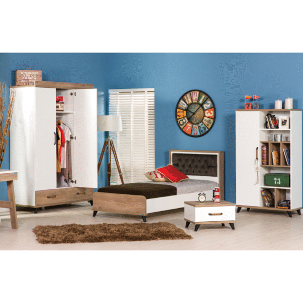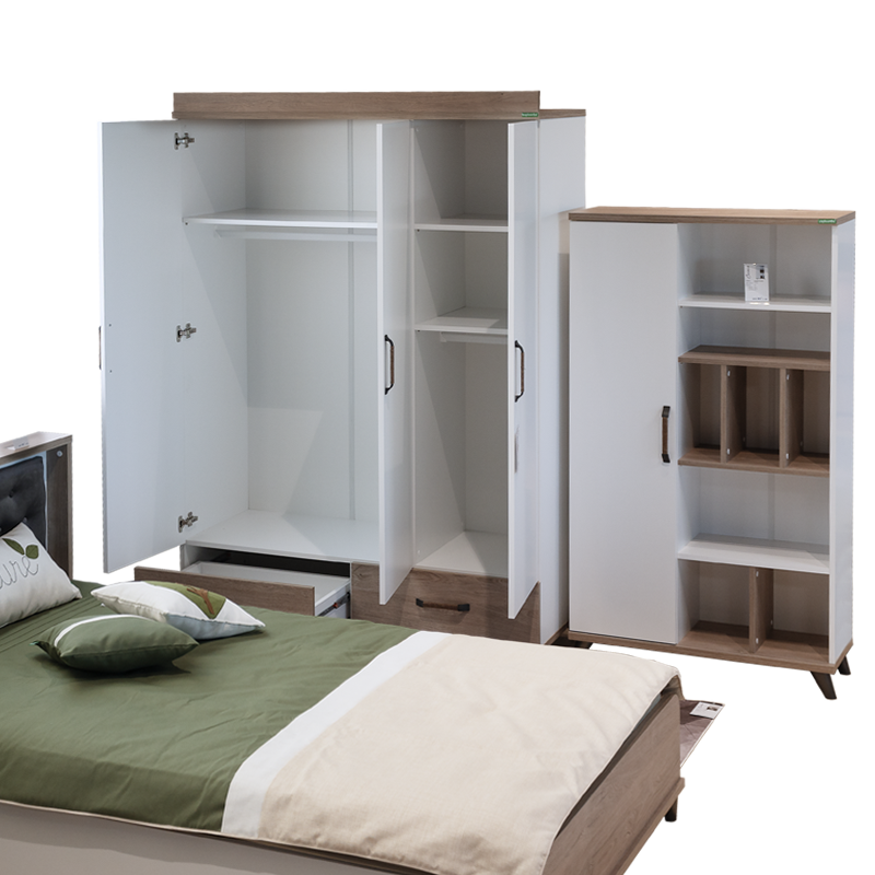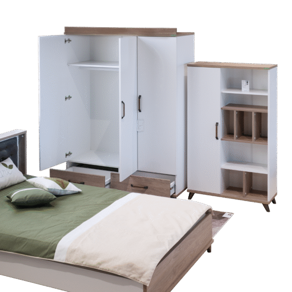 Мебелите от серия NATURA предлагат гъвкави възможности за обзавеждане на детската стая. Можете да създадете цялостен хармоничен интериор, комбинирайки всички елементи от серията – легло, гардероб, бюро, скрин и етажерка. Мебелите могат да се използват и самостоятелно или в частични комбинации, за да предложат идеалната персонализация спрямо вашите нужди и предпочитания.