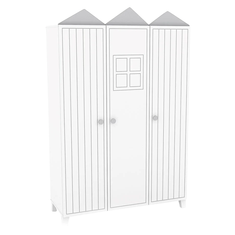 • Детският трикрилен гардероб MIAMI впечатлява с оригинален дизайн, напомнящ фасада на приказни къщички.