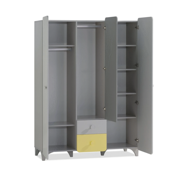 Мебелите от серията MINIA предлагат гъвкави възможности за обзавеждане на детската стая. Можете да създадете цялостен хармоничен интериор, комбинирайки всички елементи от серията – легло, гардероб, бюро, скрин и етажерка. Могат да се използват и самостоятелно или в частични комбинации, за да предложат идеалната персонализация спрямо вашите нужди и предпочитания.