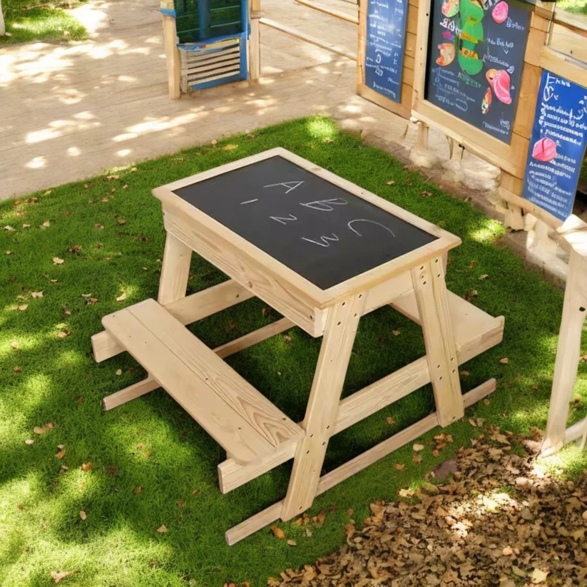 С детската градинска маса за пикник с черна дъска и място за съхранение Ginger Home вашите деца ще открият безброй възможности за игра и творчество в градината!