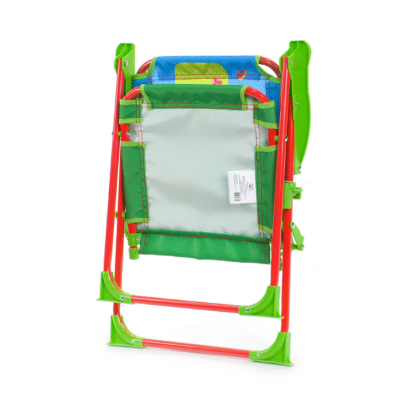- Забавен и стилен дизайн: С атрактивно зелено покритие и весели животински мотиви, сгъваемото детско столче TOFFY е изработено от безопасни материали, които отговарят на европейските стандарти.