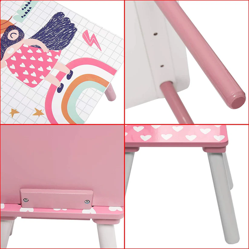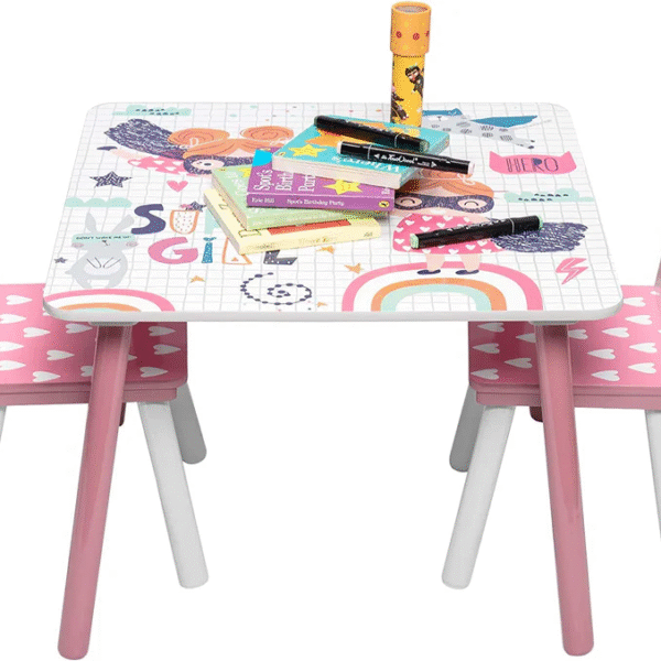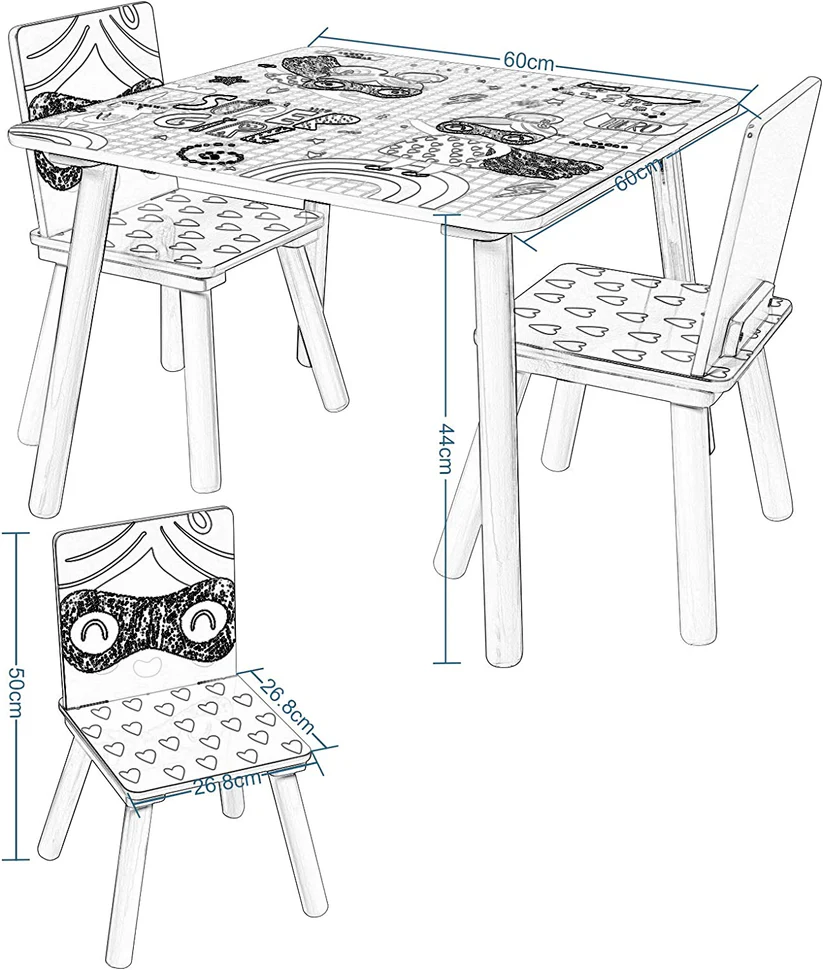 - Детската маса с 2 столчета имат крака от масивно дърво, които са проектирани да бъдат здрави и устойчиви на удар, което гарантира безопасността на вашето дете, дори когато седи неспокойно.